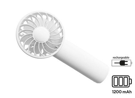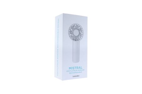 ABS structure and polypropylene propellers. Rotation speeds: 4200 rpm at speed 1 / 5500 rpm at speed 2 / 6400 rpm at speed 3. Works with a 1200mAh rechargeable battery. Maximum autonomy in speed 1: 6 hours. USB-C charging cable included. Wrist strap provided.