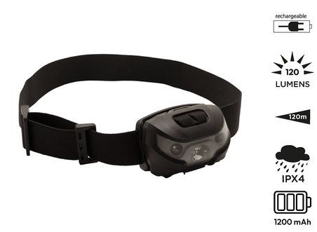 3 wählbare Beleuchtungsmodi: 3W CREE weiße LED (100%, 30% oder blinkend). Integrierter Bewegungssensor zum berührungslosen Ein- und Ausschalten (nützlich z.B. bei Verwendung von Handschuhen). Verstellbarer Lichtstrahl. Gehäuse aus ABS-Kunststoff. Bequemes elastisches Band mit Soft-Touch-Oberfläche. Funktioniert mit einem 1200mAh wiederaufladbaren Akku. Autonomie: 3h-3,5h. Wird mit einem Micro-USB-Ladekabel geliefert. LED-Leistung: 3W (120 Lumens). Strahllänge: 120m. Wasserdichtigkeitsniveau: IPX-4. Wird in einer Geschenkbox geliefert.