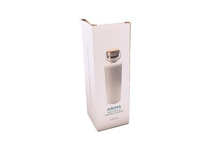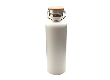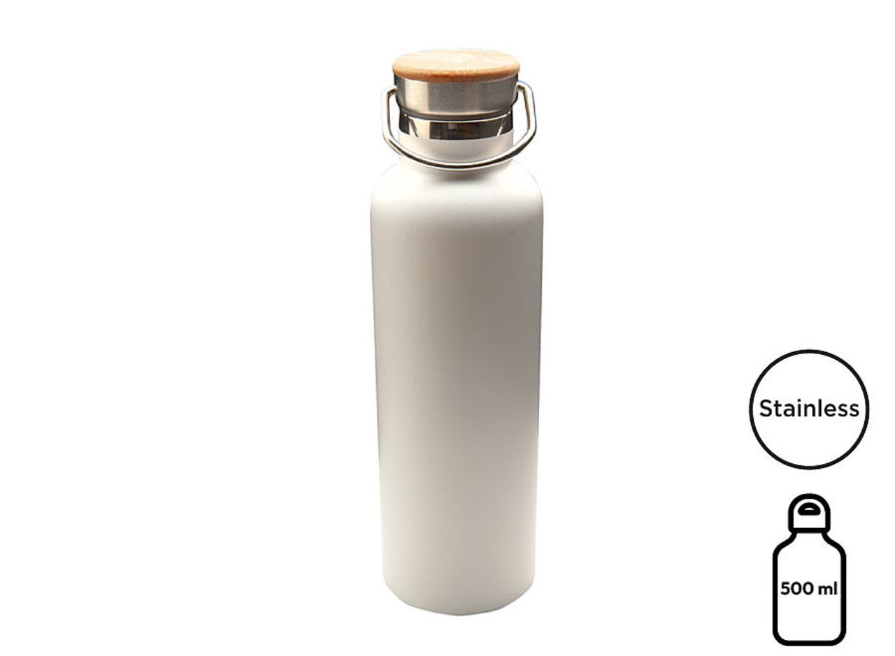 Doppelwandige Flasche 'Arima', weiß, Bambusdeckel, 500 ml