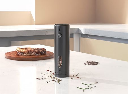 Gehäuse aus ABS. Keramikmahlwerk mit 6 einstellbaren Mahlstufen. LED-Licht unter der Mühle und transparenter Behälter. Fassungsvermögen: 110 ml (entspricht ca. 60 g Pfefferkörnern). Funktioniert mit einem wiederaufladbaren 300-mAh-Akku. USB-C-Ladekabel im Lieferumfang enthalten.