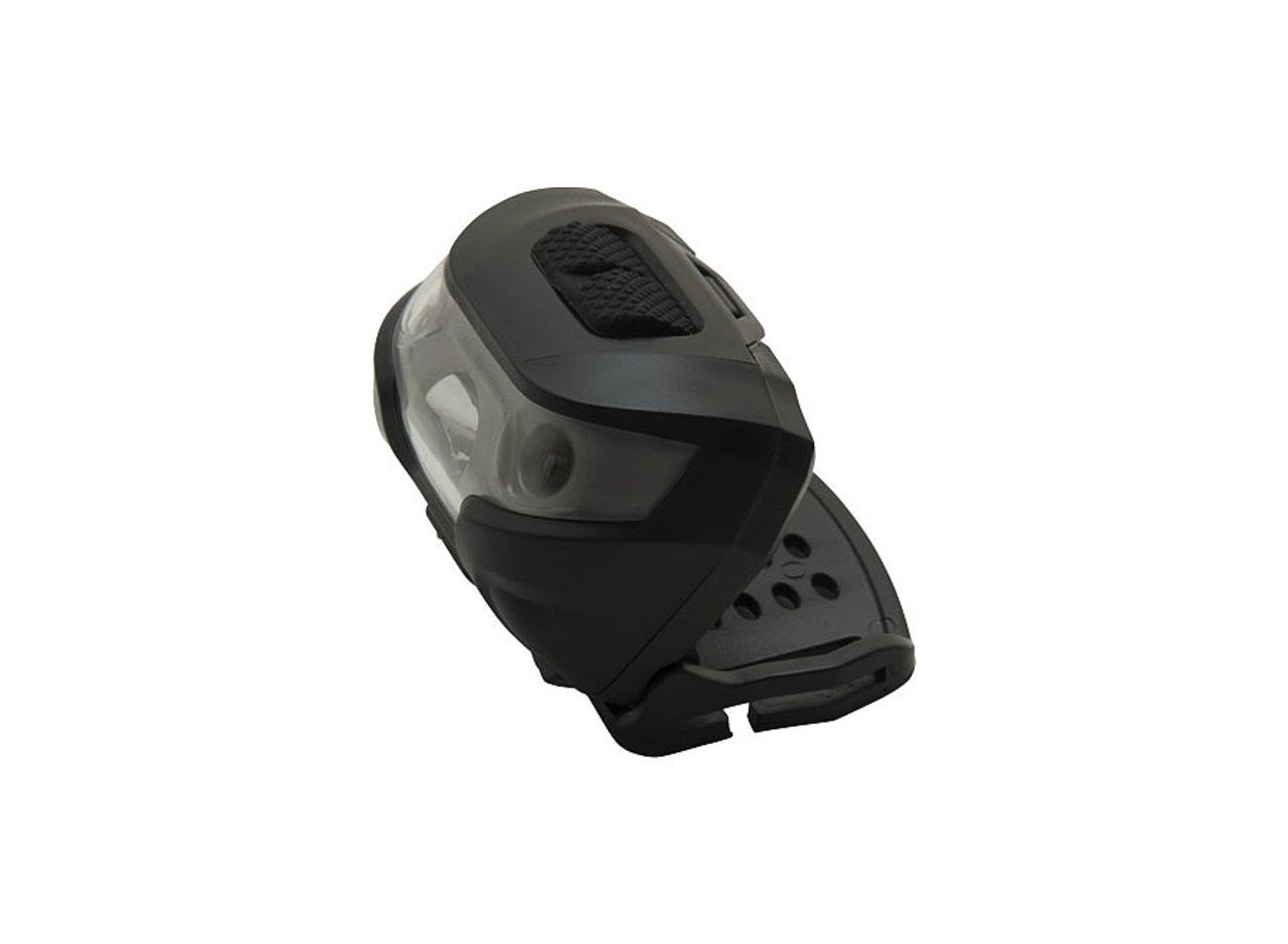 Headlight with 3 lighting modes: 3W CREE white LED (100%, 30%, or flashing). Built-in motion sensor for contactless On/Off operations. Adjustable lighting beam. ABS plastic case. Comfortable elastic band in soft touch. Works with a 1200mAh rechargeable battery. Autonomy: 3h-3h30. Micro-USB charging cable included. LED power: 3W (120 lumens). Beam distance: 120m. Waterproof level: IPX-4. Delivered in a white carton gift box.