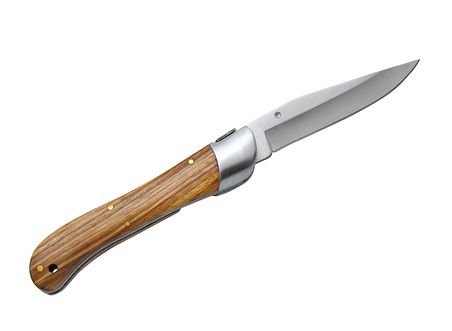 Folding pocket knife with a 420 stainless steel blade. Zebrawood handle. Traditional tangstamping. Brushed stainless steel bolster. One-handed opening/closing with a Liner lock safety system. Heather grey 420D nylon belt pouch included.