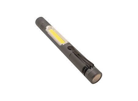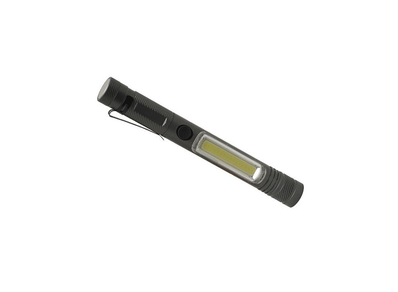 Manche en aluminium anodisé. 2 fonctions : Lampe torche (Puissance de la LED : 1W (70 lumens). Longueur du faisceau : 10 m) et lampe de signalisation (Puissance des COB : 3W (120 lumens). Longueur du faisceau : 5m). 2 modes d'éclairage aux choix (Continu ou clignotant). Puissant aimant à l'arrière de la lampe de poche. Joints sur chaque pas de vis pour une meilleure étanchéité (ne pas immerger). Bouton on / off sur le manche. Fonctionne avec 3 piles AAA (fournies). Niveau d'étanchéité : IPX-4.