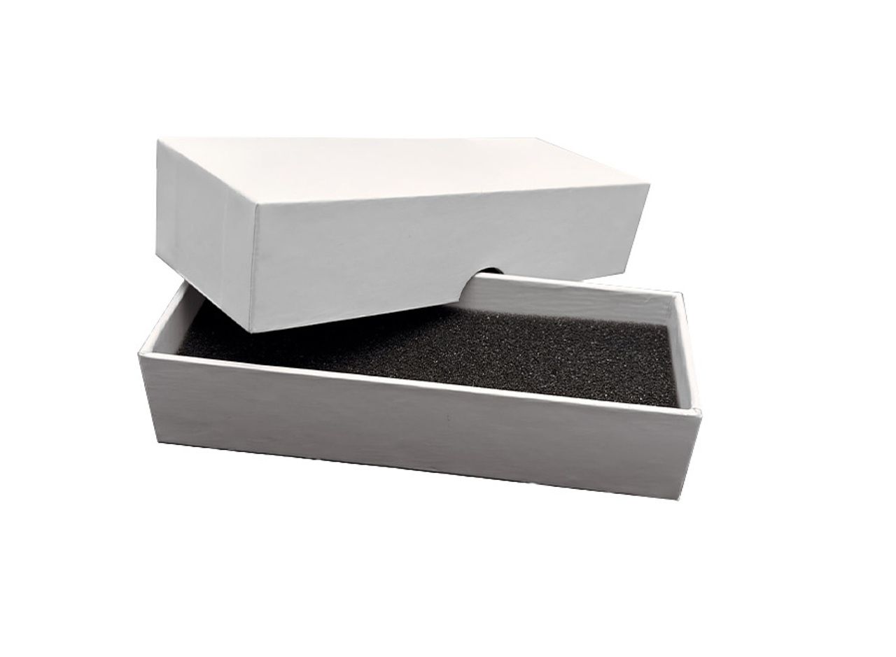Coffret cadeau en carton rigide blanc avec mousse de calage pour une présentation premium de nombreux produits de notre collection.