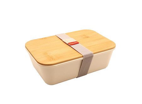 Boîte déjeuner (lunch box) simple compartiment. Contenant en polypropylène. Couvercle en bambou avec joints en silicone pour une meilleure étanchéité. Boîte repas compatible (sans le couvercle) avec lave-vaisselle (50° max), congélateur et micro-ondes (Sans le couvercle à 100° et 2 minutes max). Contenance : 1 L.