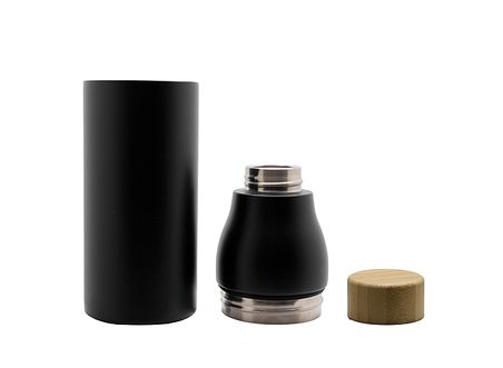 Double paroi en acier inoxydable 18/8 conforme aux normes de contact alimentaire. Bouteille dévissable en 2 parties. Bouchon vissé en bambou avec un joint en silicone. Contenance : 600 ml.